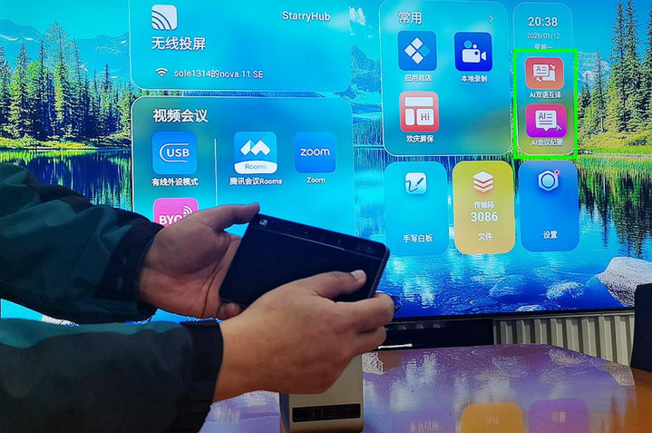 最让我省心的是它的便捷性,拆开包装,接上电源,再用HDMI线连到旧投影仪上,开机就能用,真正做到即插即享,完全不用复杂组装和调试。以前每次开会前,我都要提前十几分钟到会议室准备,现在只要提前2分钟打开它,就能快速进入会议状态;就算是刚入职的新同事,也能轻松上手,省去了繁琐的开会准备动作,让会议效率直接提升一倍。